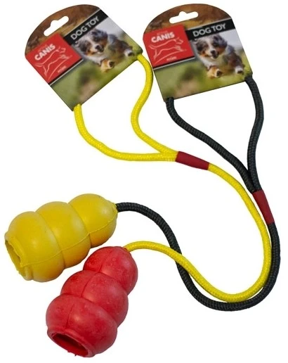 Monikäyttöinen koiranlelu sopii niin heittelyyn kuin myös vetoleikkeihin. Kuminen kartio köyden toisessa päässä auttaa pitämään koiran hampaat puhtaina ja voi näin edesauttaa hyvää suunterveyttä. Lelu on valmistettu kovasta ja kestävästä luonnonkumista.