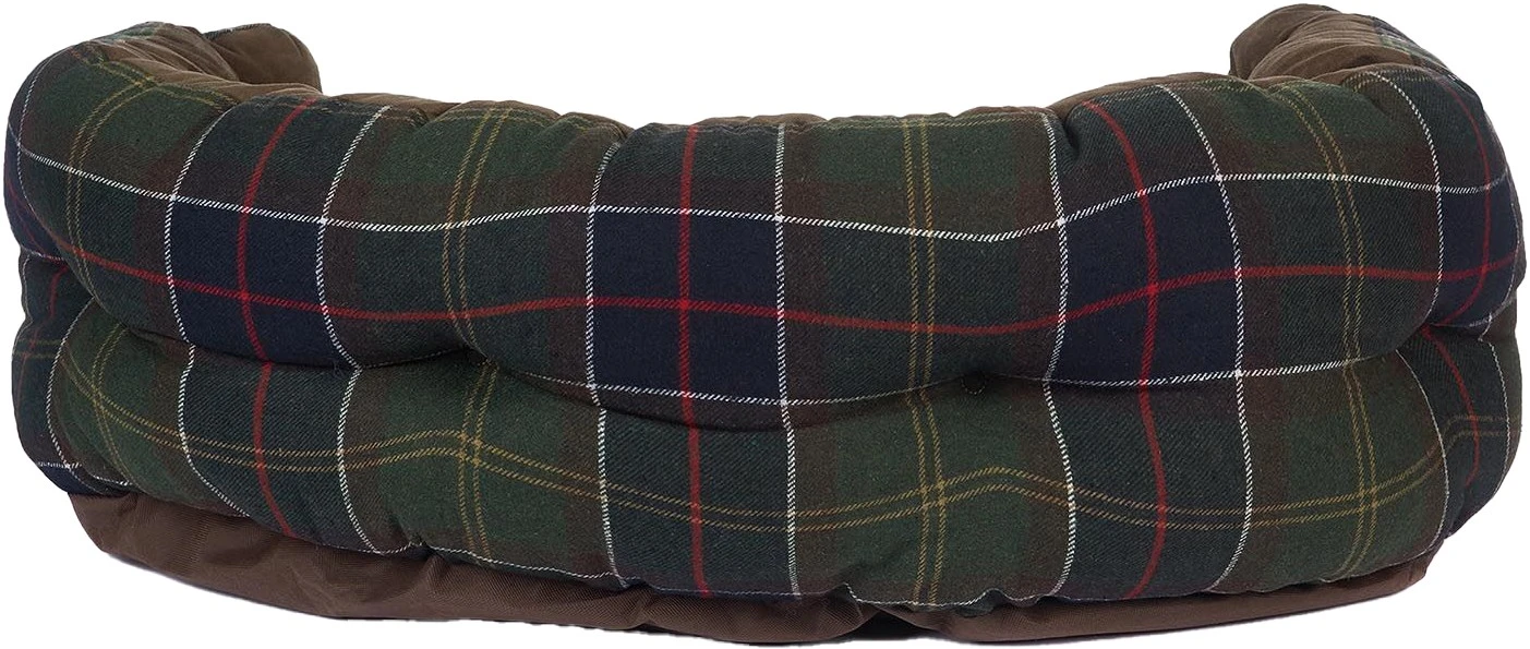 Luxury Dog Bed 35 “on koiranpeti Barbourilta. Sängyn ulkopinta on villakangasta ja sisäpuoli mukavaa mokkajäljitelmää. Tyyny on pehmustettu polyesterillä.