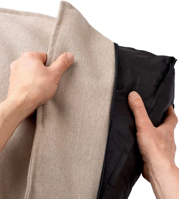 Pedin alapuolella on vetoketju, jonka avulla pehmusteen saa helposti pois ja päällisen voi pestä pesukoneessa 30 asteessa. Huom! Sulje vetoketju pesun ajaksi.