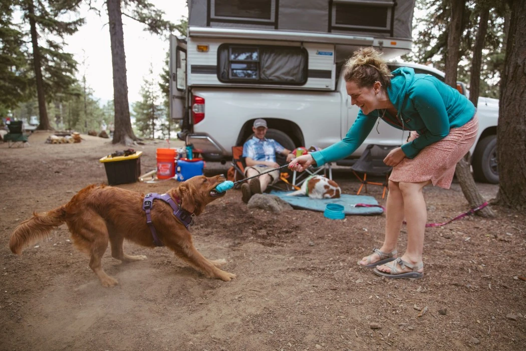 Ruffwearin suosittu Gnawt-a-Cone™ -lelu, johon on lisätty köysi, jonka avulla sitä on helppo käyttää leikkimiseen tai koulutukseen. Tämä luonnonkumilelu on tarpeeksi kestävä jopa kaikista innokkaimmillekin koirille.