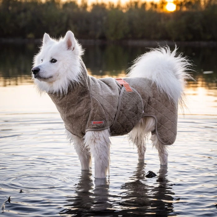 Supreme 2.0 -malli on valmistettu 400 grammasta erittäin imukykyistä Wet2Dry™-materiaalia. Se imee vettä 7 kertaa oman painonsa verran ja vähentää siten märän koiran hajua, suojaa kotiasi ja autoasi vedeltä ja lialta.