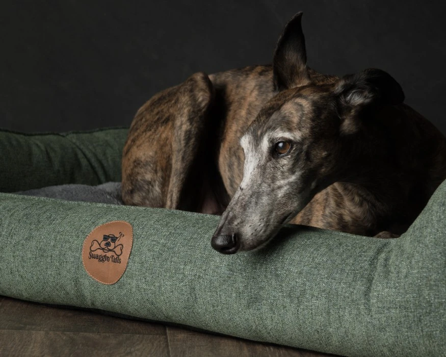 Swaggin Tails Sleepy on ihana koiransänky, jossa skandinaavinen muotoilu kohtaa toiminnallisuuden. Tämä koiranpeti sopii erinomaisesti myös sisustukseen. Täyte on valmistettu kierrätetystä materiaalista ympäristön säästämiseksi. Pedin patja on täynnä Memory Foam-vaahtoa suojaamaan koirasi selkärankaa ja niveliä, mikä tarjoaa lempeän ja mukavan unen. Patjan voi myös kääntää sen mukaan, haluatko pörröisen vai sileän puolen esille. Kankaassa on kaunis pinta ja luonnollinen tuntu, ja se voidaan pestä koneessa vetoketjujen ansiosta. Kahvat ja kulmat on valmistettu vegaanisesta nahasta, mikä antaa mukavan skandinaavisen ilmeen.