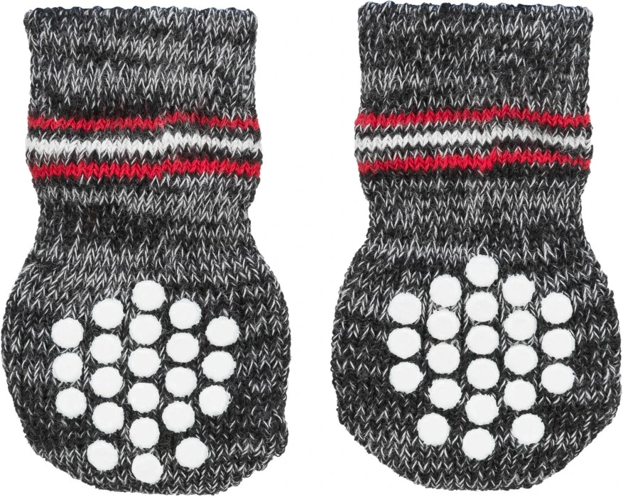 Trixien puuvillaisissa koirantossuissa on liukuesteillä varustetut pohjat, jotka antavat hyvän pidon liukkailla pinnoilla. Tossut soveltuvat hyvin selkä- ja nivelongelmista kärsiville koirille, ja niiden käyttö myös edistää loukkaantuneiden tassujen paranemista. Lisäksi tossut suojaavat lattioita ja huonekaluja naarmuuntumiselta. Koko: XS-S.