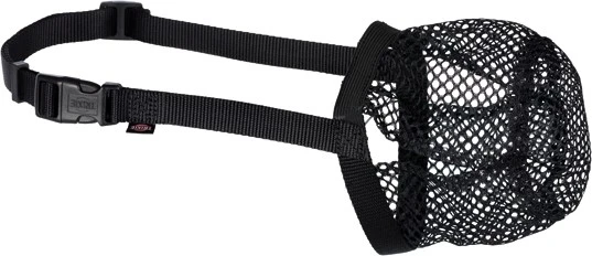 Trixien kevyt suojaverkko kuonolle estää koiraasi syömästä ei-toivottuja asioita luonnosta, kuten mahdollisesti myrkytettyjä herkkuja tai muiden eläinten jätöksiä. Käytännöllinen suojaverkko on valmistettu kevyestä polyesteriverkkokankaasta, ja siinä on joustavat nauhat, jotta se olisi mahdollisimman mukava koiran päällä. Suojaverkon sivuilla on aukot, jotta koiran voi palkita suojaverkosta huolimatta.